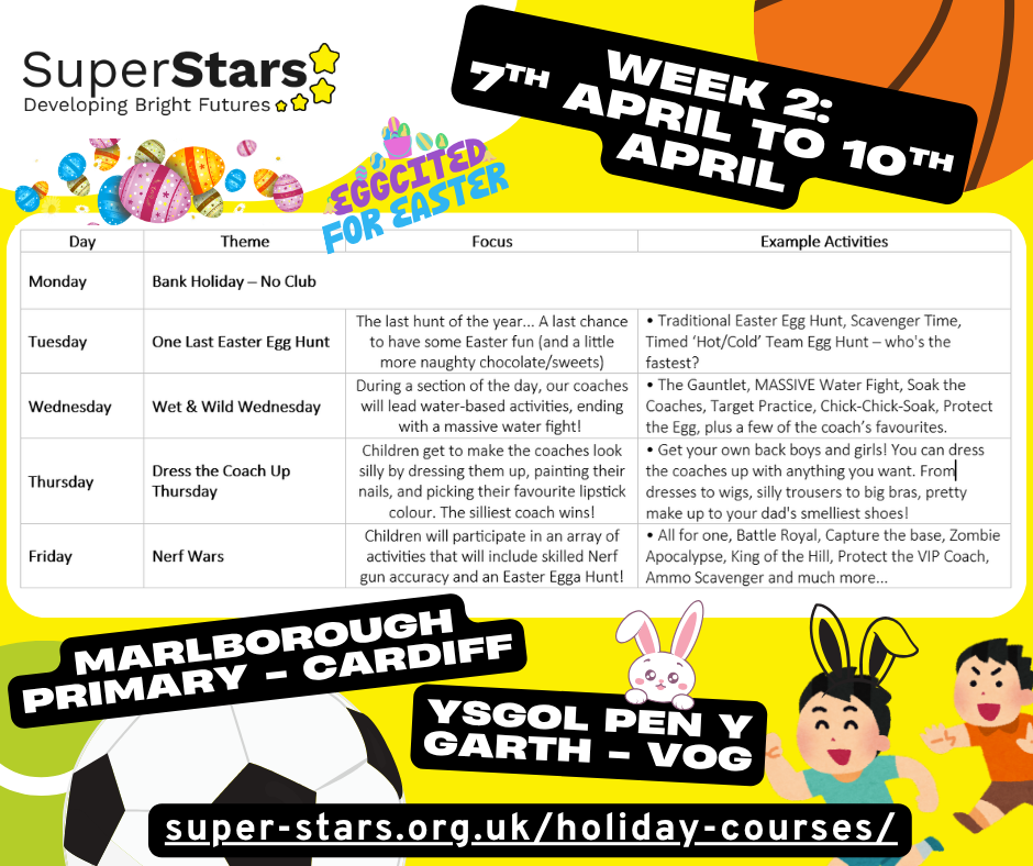 We’ve successfully run holiday courses for over 20 years. We’re not a pop-up course or part of a franchise and we keep our services local. Our holiday course division is a key ingredient of SuperStars School Services Limited, which provide PPA cover and extra support for teachers and schools across South Wales and the South West of England.